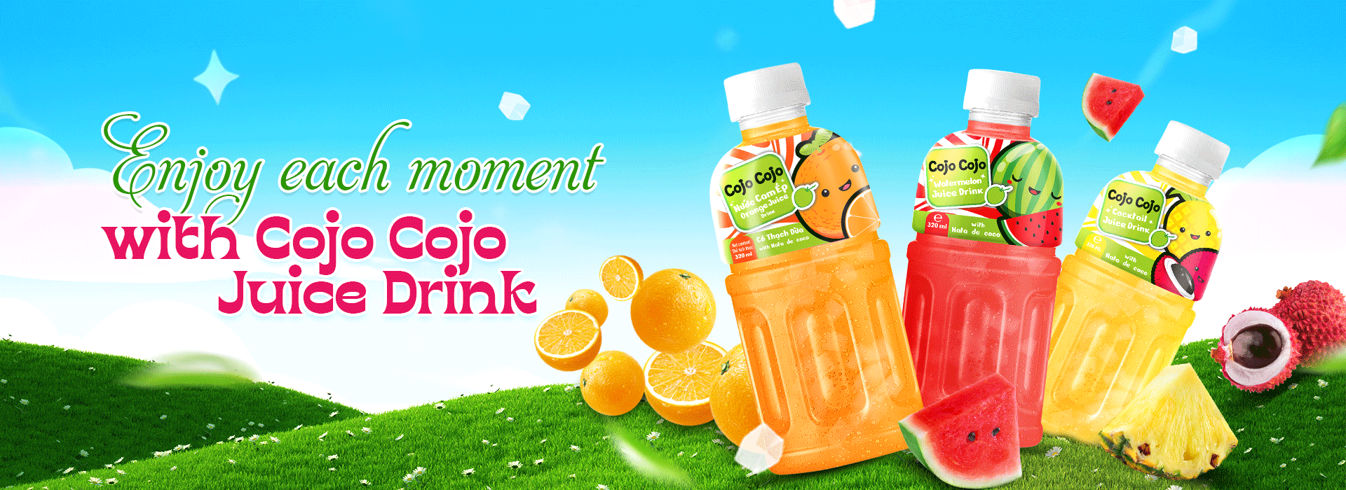 Core fruit range: mango, lychee, soursop, pineapple, watermelon, pink guava… Options for no sugar added / with pulp / with nata de coco depending on line.