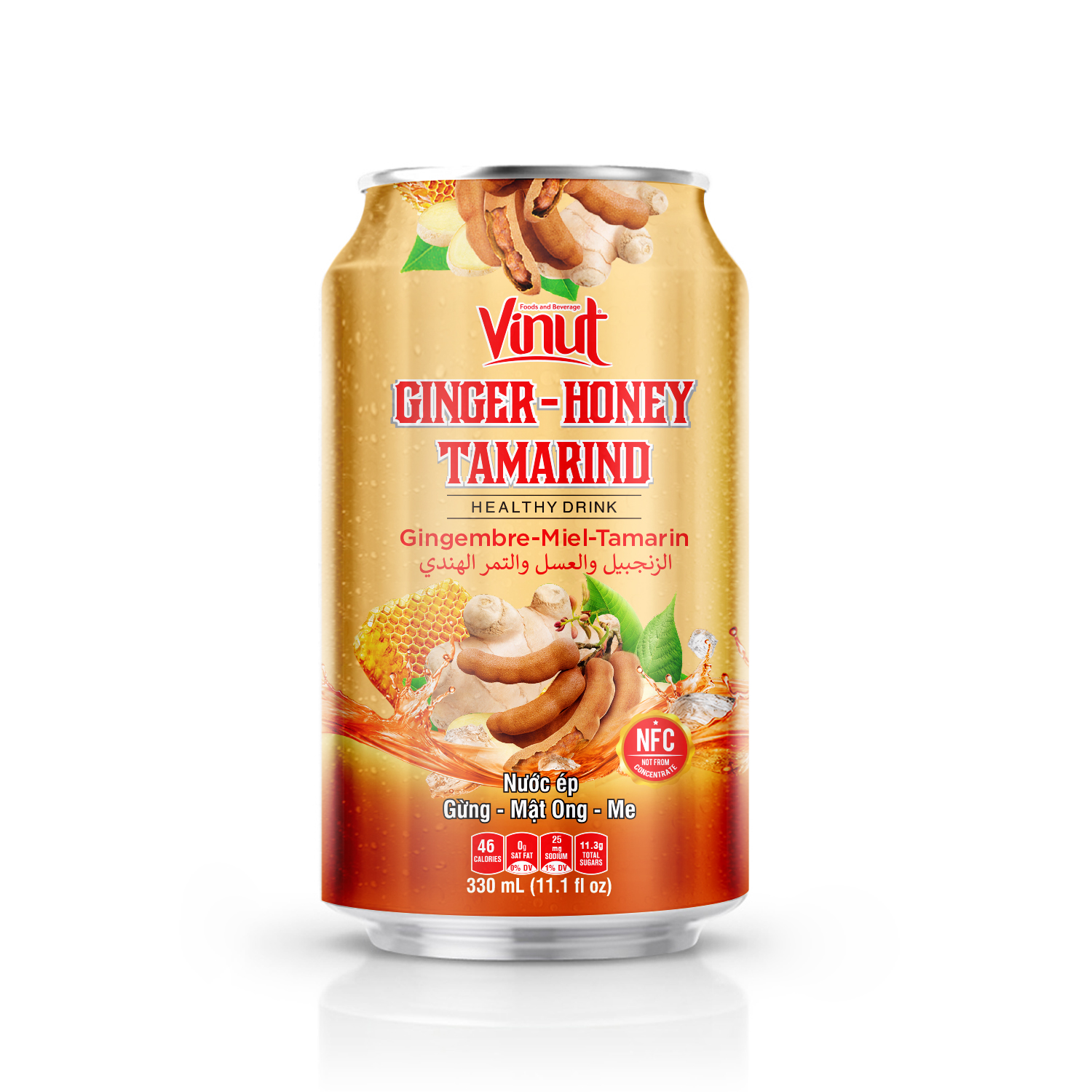 Vinut Ginger-Honey Tamarind Healthy Drink blends bright ginger, smooth honey, and tangy tamarind. NFC not from concentrate in a slim 11.1 fl oz (330 mL) can, it chills fast for a spiced-sweet, aromatic refreshment anytime.